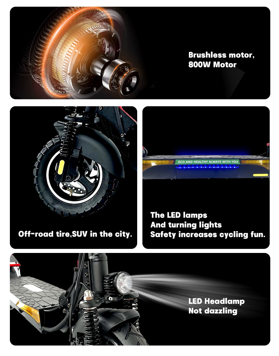 Tire: 10' inch Air Tires with Tubes Charging time: 5-7Hours Frame: Aluminum-ABS+PC+Al alloy