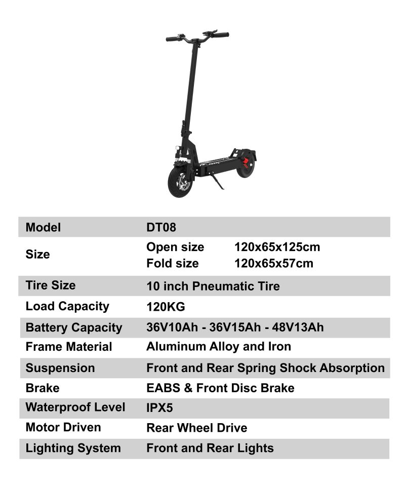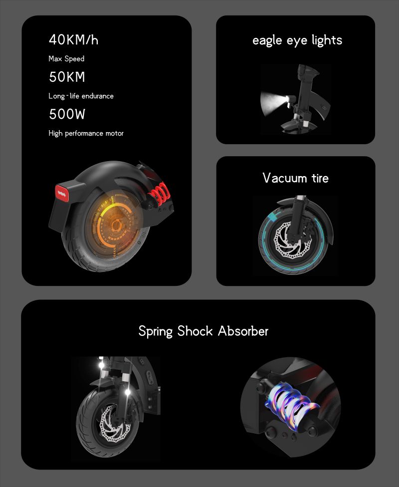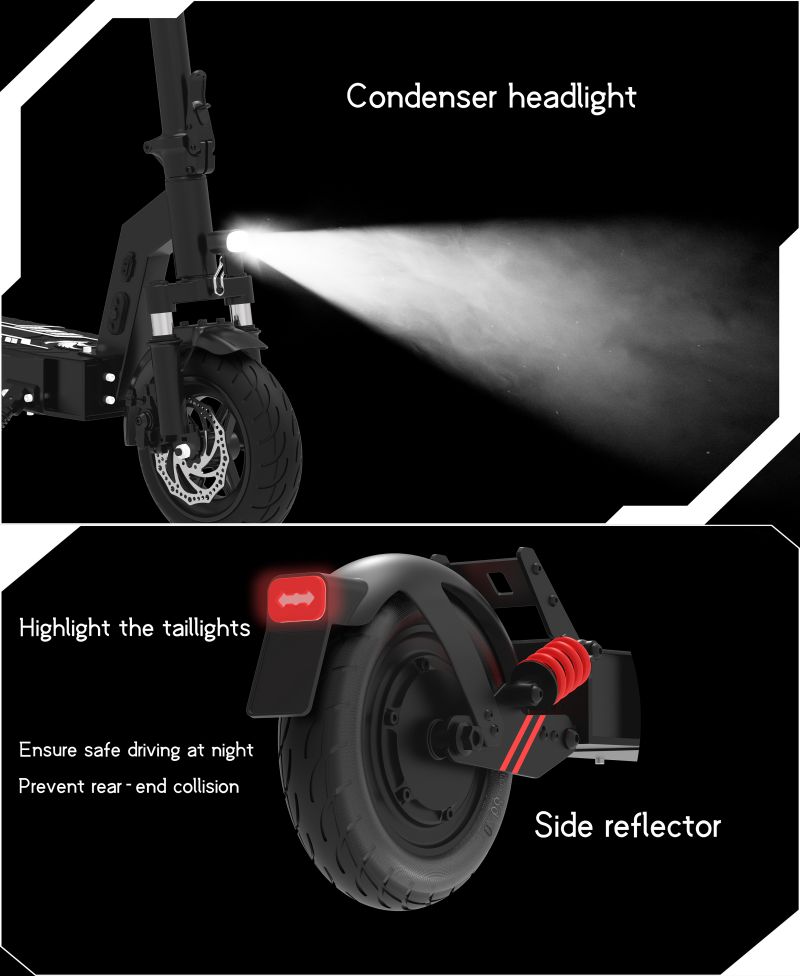Tire: 10 inch Tubeless Vacuum Tire Light: Headlight+Rear brake lamp